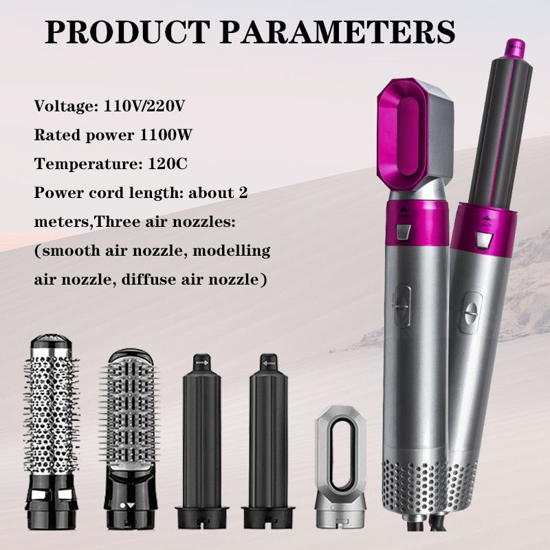 Asciugacapelli multifunzionale 5 in 1 pettine arricciacapelli bacchetta staccabile Kit spazzola per capelli piastra per capelli a ioni negativi